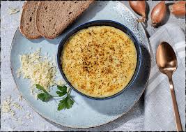 Schönegger Bauernbrot oder Weißbrot in grobe Würfel schneiden und servieren. Guten Appetit! Zubereitung. 1 Knoblauchzehe. 1 EL Zitronensaft. Pfeffer, Salz.