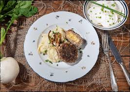 Essig, Öl, Salz und. Pfeffer verrühren und die Marinade mit dem Rettich mischen. ... Mit den Händen einen flachen Fladen formen und je 1 EL Käse-Füllung in der ...